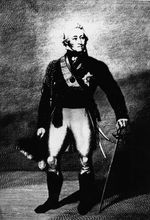 Description :SIR JOHN COAPE SHERBROOKE DEBOUT, EPEE ET CHAPEAU A LA MAIN.