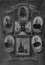 Description :MEDAILLONS DES PRETRES QUI ONT OEUVRE COMME CURE A L'EGLISE ST-JEAN BAPTISTE DE SHERBROOKE. VUE SUR LA FACADE ET L'INTERIEUR DE CETTE MEME EGLISE.