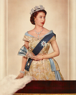 Description :PORTRAIT D'ELIZABETH II DEBOUT.