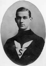 Description :GEORGE POVEY PHOTOGRAPHIE EN UNIFORME DE HOCKEYEUR. IL FAISAIT PARTIE DU SHERBROOKE HOCKEY CLUB.