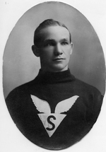Description :PORTRAIT DE A.H.BAKER PORTANT LE COSTUME DU SHERBROOKE HOCKEY CLUB.