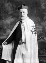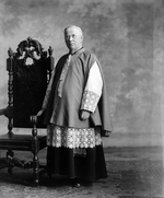 Description :LE CHANOINE EST PHOTOGRAPHIE DEBOUT, PORTANT CAPE ET CROIX DE GALILEE QU'IL VIENT PROBABLEMENT DE RECEVOIR.