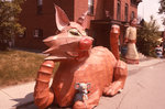 Description :MONUMENTS EN PAPIER MACHE 69.1 : UN CHAT TIENT CONTRE LUI UNE SOURIS. - 69.2 : UN CHIEN BRUN TACHETE DE BLANC SE TIENT DEBOUT SUR LE TROTTOIR, SA TETE SEMBLE ETRE PLUS GROSSE QUE SON CORPS. - 69.3 : DE BIAIS A UNE MAISON DE BRIQUE A DEUX ETAGE...