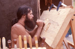 Description :70.1 : ARTISAN A L'OEUVRE SCULPTANT UN CADRE SUR BOIS. - 70.2 : ARTISAN DEVANT SON KIOSQUE DE VETEMENTS EN CUIR. - 70.3 : ARTISANS ASSIS A SON KIOSQUE DE POTERIE PENDANT QU'UNE CLIENTE REGARDE A L'INTERIEUR. - 70.4 : ARTISANE SCULPTANT DU BOIS...