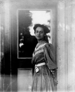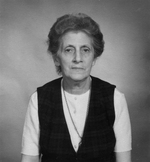Description :PORTRAIT DE ANNETTE DESNOYERS. ELLE EST DEVANT UNE PORTE ET ON VOIT UN PEU A L'EXTERIEUR.