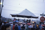 Description :83.1 : FOULE DEVANT LE CHAPITEAU OU SE DEROULERONT LES CEREMONIES D'OUVERTURE. - 83.2 : SOUS LA PLUIE, DEBUT DES CEREMONIES. - 83.3 : DEBUT DU SPECTACLE L'ANIMATEUR S'ADRESSE AUX GENS PRESENTS. A GAUCHE, VU DE DOS AVEC UN MANTEAU A CARREAUX RO...