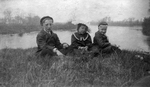 Description :HORACE, IRENE ET DAN MILLER ASSIS SUR L'HERBE DEVANT UN LAC. CES ENFANTS DOIVENT ETRE AGES ENTRE 4 ET 10 ANS.
