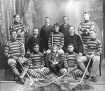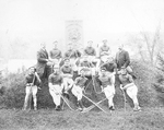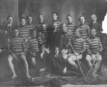 Description :GROUPE DE JEUNES HOMMES FORMANT L'EQUIPE DE CROSSE AVEC LES ENTRAINEURS. ILS SONT EN COSTUME DE JEU. G.HAWKINS; W.DAVIDSON; W.SANDERS; G.PARSONS; B.JONES; H.MORIN; F.PRESBY; G. CORMIER; E.HARGEST; L.HYNDMAN; T.SIMPSON; ROBT. WILSON; T.WARK; R....