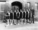 Description :LES 7 FILLES DE L'EQUIPE, LEUR GERANTE ET LEUR ENTRAINEUR. ELLES PORTENT LA TUNIQUE DE L'ECOLE. GERALDINE DRANSFIELD; JEAN BEATTIE; MARJORIE MCKEE; JOYCE HAICH; ARLENE WELLS; CAROLINE MACRAE; CATHERINE WILCOX; ROSABELLE HEATH (MANAGER); BOB KE...