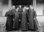 Description :8 CURES DU DIOCESE DE SHERBROOKE SUR LES MARCHES DU PRESBYTERE ST-GEORGES DE WINDSOR. SUR LA 1ere RANGEE DE GAUCHE A DROITE: J.A.LEFEBVRE (WEEDON), ALEXANDRE MARTEL, O.ZACHARIE LETENDRE, DELPHIS METEVIER. SUR LA 2e RANGEE DE GAUCHE A DROITE: G...