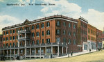 Description :VUE LATERAL DE LA FACADE DU NEW SHERBROOKE HOUSE AU COIN DES RUES KING ET DEPOT.