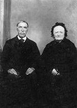 Description :PHOTO STUDIO D'UN COUPLE AGE, ASSIS, (ENVIRON 70 ANS) MOISE BIRON ET MADELEINE BEAULIEU, SON EPOUSE. LA DAME PORTE UN BONNET DE DENTELLE NOIRE.
