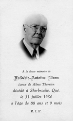 Notes :FREDERIC-ANTOINE BIRON EST LE FILS DE PAMPHILE DE L'USINE DE CARROSSERIE P. BIRON & SONS. FREDERIC-ANTOINE EST DECEDE LE 31 JUILLET 1956 A L'AGE DE 88 ANS.