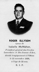 Notes :ROGER ELLYSON ETAIT PRESIDENT GENERAL DES CERCLES LACORDAIRES ET STE-JEANNE D'ARC