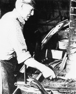 Description :TROIS ETAPES DANS LE TRAVAIL D'UN FORGERON. LES FORGERONS NE SONT PAS LES MEMES INDIVIDUS SUR LES TROIS PHOTOS.