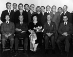 Notes :IL SEMBLE S'AGIR D'UNE FETE POUR LES 35 ANS DE SERVICES DE CERTAINS EMPLOYES,PROBABLEMENT DEUX DE LA 1ere RANGEE. SIX NOMS NOUS SONT DONNES MAIS NOUS NE POUVONS LES LOCALISES.