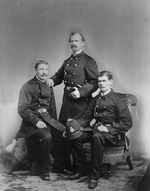 Description :3 POLICIERS DU DETACHEMENT DE SHERBROOKE EN UNIFORME, 2 ASSIS ET 1 DEBOUT , LE SERGENT THOMAS RAWSON. LES DEUX AUTRES SONT LE CONETABLE JOHN O'NEIL ET LE CONSTABLE BLOUIN.