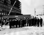 Description :4.1 GROUPE DE PERSONNES ASSEMBLEES DEVANT UNE STRUCTURE PORTANT LE NOM DE L'ENTREPRENEUR : MACKINNON STRUCTURAL STEEL CO. LTD. 3E DE GAUCHE : J. M. JEANSON, 5E DE GAUCHE : CARRIER FORTIN, 8E DE GAUCHE : LUCIEN HEBERT, 2E DE DROITE : FELIX TH...