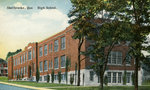 Description :VUE DE LA FACADE DU SHERBROOKE HIGH SCHOOL SUR LA RUE ONTARIO A SHERBROOKE.