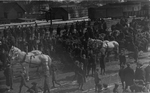 Description :A LA GARE RUE DEPOT, UNE FOULE D'HOMMES ET D'ENFANTS ATTENDENT. CERTAINS SONT INSTALLES DANS LEUR BERLINE. A L'ARRIERE ON VOIT UN WAGON SUR LES RAILS ET PLUS LOIN, QUELQUES BATIMENTS. ON NE VOIT PAS LA GARE COMME TEL