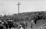 Description :GRANDE FOULE ASSEMBLEE A L'OCCASION DE LA BENEDICTION D'UNE CROIX SUR UNE COLLINE. ON VOIT LA CROIX TRES HAUTE ET MINCE QUI SE DETACHE DU FOND DU CIEL. A L'AVANT-PLAN, SUR LA GAUCHE, IL Y A QUELQUES AUTOMOBILES PARMI LA FOULE.