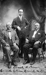 Description :PHOTO STUDIO DE 3 HOMMES. A GAUCHE, ASSIS: EMERIL E. BIRON. A DROITE, ASSIS: EMERILE M. BIRON ET DEBOUT AU 2E RANG : EMERILE N. BIRON, DES ETATS-UNIS.