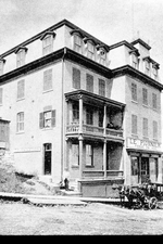 Description :FACADE DE L'IMPRIMERIE DU JOURNAL "LE PIONNIER", SITUE SUR LA RUE MARQUETTE A SHERBROOKE.