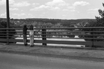 Description :DU BOULEVARD ST-FRANCOIS NORD, JEAN-FRANCOIS ET ANNIE REGARDENT VERS LE PONT DE CHEMIN DE FER DU C.N. SITUE A LA JONCTION DES RIVIERES MAGOG ET ST-FRANCOIS.