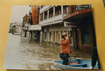 Description :DEBORDEMENT DE LA RIVIERE ST-FRANCOIS AU CENTRE-VILLE DE SHERBROOKE, INONDANT UNE SECTION DE LA RUE KING, AUTOUR DU CINEMA CAPITOL. UN POMPIER DANS UNE CHALOUPE, INSPECTE LES LIEUX.