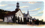Description :1.1: VUE LATERALE DE LA FACADE DE LA CHAPELLE COMMEMORATIVE, ET LA CHAPELLE SCALA SANTA. AU LOIN' LE COUVENT DES SOEURS. 1.2: VUE LATERALE DE LA FACADE DE LA CHAPELLE DE LA SCALA SANTA A STE-ANNE DE BEAUPRE.