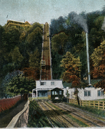 Description :L'ELEVATEUR DU MONT-ROYAL. EN BAS ON VOIT UN WAGON DE TRAMWAY.