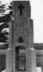 Sujet principal :MONUMENT A LA MEMOIRE DE L'OUVERTURE DU CANTON WICKHAM ET ED LA BENEDICTION DE LA CHAPELLE DE LA MISSION DE ST-PIERRE DE WICKHAM ET DU CIMETIERE ADJACENT