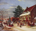 Description :SCENE DU COMMENCEMENT DU XIXe SIECLE OU PARENTS ET AMIS REGARDENT LEUR FOYER APRES LA VEILLEE DU JOUR DE L'AN. CERTAINES PARTENT EN RAQUETTES, D'AUTRES EN CARRIOLES CHAUDEMENT EMMITOUFLES. SUR LA GALERIE D'UNE HABITATION, ON FAIT LES DERNIERES...