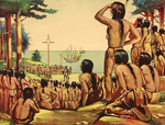 Description :SCENE DE L'ARRIVEE DE JACQUES CARTIER EN AMERIQUE DU NORD, ACCUEILLI PAR LES AMERINDIENS A "GASPE".