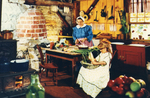 Description :2.1 INTERIEUR D'UNE CUISINE CANADIENNE VERS 1850. ON VOIT DEUX PERSONNES TRAVAILLENT A LA PREPARATION DU REPAS. SCENE PRISE A UPPER CANADA VILLAGE, MORRISBURG. 2.2 SALON MEUBLE D'UNE RESIDENCE DE DOCTEUR A UPPER CANADA VILLAGE EN ONTARIO.