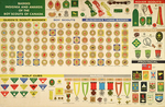 Description :TABLEAU DES BADGES, INSIGNES ET MEDAILLES UTILISES PAR LES SCOUTS DU CANADA POUR TOUS LES GROUPES D'AGE. EMBLEMES DES PROVINCES.