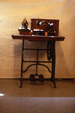 Description :APPAREIL POUR COURBER LES LAMES DES FAUCILLES INSTALLE DANS UNE BOUTIQUE.