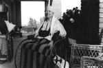 Description :VIEILLE FEMME EN FAUTEUIL ROULANT (ENVIRON 73 ANS) AVEC UNE COUVERTURE SUR LES GENOUX. SUR UNE VERANDA, ON APERCOIT A GAUCHE, UN AUTRE FAUTEUIL ROULANT.