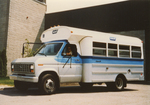 Description :VUE SUR UN AUTOBUS DE TRANSPORT ADAPTE DE LA CMTS. LE CONDUCTEUR EST A SON POSTE.