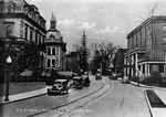 Description :DU PONT, VUE SUR LA RUE DUFFERIN. ON REMARQUE LES RAILS DE TRAMWAYS. DES AUTOMOBILES SONT STATIONNES LE LONG DE LA RUE.