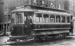 Description :VUE SUR UN TRAMWAY NO 2, LIGNE WELLINGTON. DEUX TRAVAILLEURS DE TRAMWAY SONT SUR LA PHOTO.