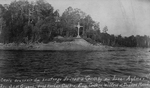 Description :VUE AERIENNE SUR LA CROIX AU LAC AYLMER, EN SOUVENIR DE L'ACCIDENT DE 1905.