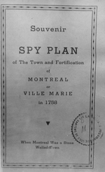 Description :PHOTOGRAPHIE DE LA PAGE TITRE ET DU PLAN DE MONTREAL REPRODUITE A L'INTERIEUR DU VOLUME OU DE LA BROCHURE. SOUVENIR - SPY PLAN OF THE TOWN AND FORTIFICATION OF MONTREAL OR VILLE-MARIE IN 1758