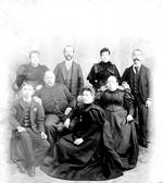 Description :PHOTO STUDIO DE PAMPHILE ET ZOE BIRON ENTOURES DE LEURS 6 ENFANTS. (ORDRE SOUS RESERVE) 1ER RANG: AMEDEE, PAMPHILE, MALVINA, ZOE. - 2e RANG: JULIE-GENEVIEVE (COMMUNEMENT APPELEE JULIA-JEANNE) QUI MARIERA ISRAEL-ULDERIC MONTOUR, EMERIL, JEANNE ...
