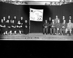 Description :A LA SALLE DE L'EGLISE CHRIST-ROI, GROUPE LACORDAIRE POSANT AVEC LE DRAPEAU AU CENTRE. A GAUCHE, 1ER RANG: SIMONE LEBLANC; MME PAUL AUDET; MME P. GAUCHER; MME A. BEAULIEU; MONSEIGNEUR LEONIDAS ADAM. - 2E RANG: MME GOUPIL; MME GOYETTE; MME POIS...