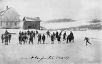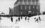 Description :VUE SUR LA PATINOIRE DU COLLEGE DU SACRE-COEUR LORS D'UNE PARTIE DE HOCKEY