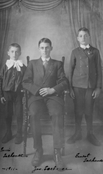 Description :DANS UN STUDIO, TROIS JEUNES GARCONS POSENT. IL S'AGIT DE LOUIS LACHANCE (ENV. 7 ANS), JOS. LACHANCE (ENV. 16 ANS), ERNEST LACHANCE (ENV. 12 ANS) PROBABLEMENT DE LAC MEGANTIC