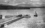 Description :UN BATEAU A VAPEUR ARRIVENT A UN QUAI DU LAC MEGANTIC. DES GENS ATTENDENT PRES D'UNE VOITURE ET D'UNE PITE DE BOIS