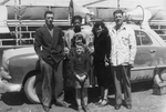 Description :VUE D'ALBERT BELL PHOTOGRAPHIE EN TOURNE PRES D'UNE VOITURE PORTANT DES HAUTS-PARLEURS AVEC DEUX FEMMES DONT L'UNE DE COULEUR FAISANT PARTIE DE SON SPECTACLE, DEUX ENFANTS ET LE MYSTERIEUX PAUL, AVALEUR DE SABRE ET DE FER, TOUS TROIS TRAVAILLA...