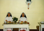 Description :2.1; VUE SUR DEUX RELIGIEUSES ATTABLEES A UNE PETITE TABLE ET MANGEANT 2.2; VUE SUR TROIS RELIGIEUSES PORTANT DES OBJET EN RAPPORT AVEC UNE CEREMONIE TENUE DANS LA CHAPELLE 2.3; VUE SUR DIX-HUIT RELIGIEUSES ET UNE JEUNE FEMME, PROBABLEMENT UNE...